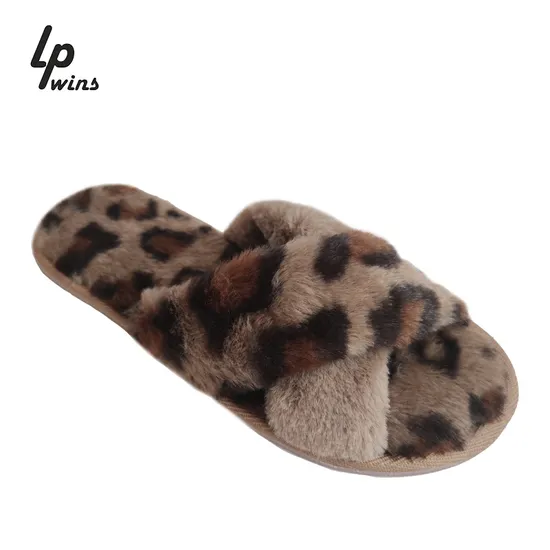 | *Item | Women Faux Fur Plush Open Toe Fluffy Flats Slippers Cross Band Soft Warm Comfy Bedroom House Leopard Slippers |