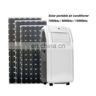 Main CategorySpecificationCooling Capacity7000btu9000btu12000btuCooling Power1800W2600W3500WHeating Capacity8000btu10000btu13000btuHeating Power1900W2800W3800WNoise (dB(A))≤42≤44≤46Air Circulation (m³/h)400400500Suitable Area (m²)6~88~1010~15EER (W/W)4.55.25.0EER (Btu/h/w)15.3915.7915.79RefrigerantR-134AR-134AR-134ACompressorPanasonic DC 24VPanasonic DC 24VPanasonic DC 24VRated Power Input (W)400500700Rated Current (A)14.52230Input Power range (V)DC 21-30DC 21-30DC 21-30Net Unit (mm)350x350x756350x350x756350x350x756Shipping Unit (mm)350x350x756350x350x756350x350x756Products DescriptionProduct ShowWHY CHOOSE USCertificationsFAQAre you manufacturer or trading company?We are a professional manufacturer, and we will do our best to show the best quality, fastest delivery and highest credit to you.Looking forward to cooperating with you!What types of Solar Air Conditioner do you provide? We provide 100% solar split air conditioner ; on grid solar split air conditioner ; hybrid split air conditioner ; standing solar air conditioner; portable solar air conditioner; casstte solar air conditioner; duct solar air conditioner.What capacity do you provide for 100% solar portable air conditioner?We provide 7000btu,9000btu,12000btu etc for 100% solar portable air conditioner.How do you ensure the quality products?We produce high quality products, we are strictly follow QC term.First our raw material suppliernot only supply us. They also supply to other factory. So good quality raw material make sure we can produce high quality products .Then,we have our own test LAB which approved by SGS, TUV, each our product should received 52 testing equipment test before production. It need test from noise, performance, energy, vibration, chemical proper,function,durability,packing and transportation etc.All goods are 100% inspected before shipping. We do at least 3 tests, including in-coming raw material test, sample test then bulk production.How about the delivery time?It depends on your quantity. Generally, it takes35-50 days after receiving your deposit.What are your shipping terms and payment terms?We support FOB EXW CNF shipping terms, support TT payment.If you are high quality customer and pass sinosure, we accept LC OA 60 days, OA 90 days.Can you provide SKD or CKD ?Can you help us build a Solar Air Conditioner factory ?Yes, we can offer SKD and CKD, we also can provide Solar Air Conditioner production equipment assembly line and testing equipment. Please contact us for more information.Can you accept customized LOGO?Yes,we can customized LOGO. you just provide LOGO design to us.How about your quality warranty ?And do you supply spare parts?Yes, we provide 1 year warranty, and 3 years for motor,and we always provide 1% free spare parts. How about the after-sales service?We have a big after-sales team, if you have any problems,please tell us directly and we will try our best to solve all of your problems.Contact Us