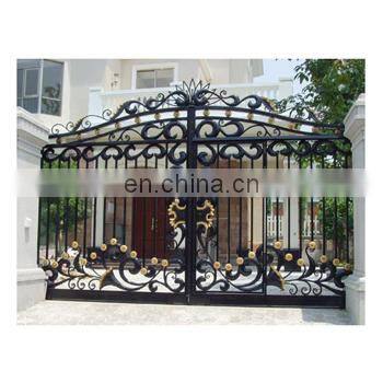 ItemWrought iron front entry gatesMaterialForge ironStyleDouble/eyebrowSize6*8ft/customizedOpeningSwing in or swing out both are okAnti-rust treatmentsand blast, hot zinc spray, epoxy primer(twice), acrylic acid black paint, hand applied faux finishThresholdIntergrated threshold with door jamb to ensure the strongness of the iron doorWeather strippingRubber weather stripping seals around jamb, door panel and glass panelPolyurethane foamJamb, panel, threshold and kickplate are fully injected with polyurethane foam
