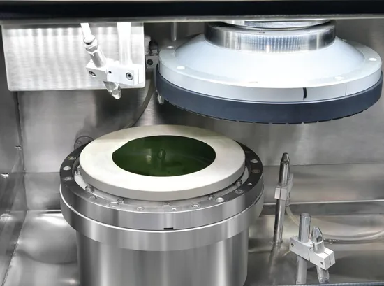 7.Man-machine interface program control system can realize antomatic tool sitting, self-compensate the grinding wheel wear thickness size, automatic adjust work piece lapping speed, test lappingtwisting force, thus prevent workpiece from deformation and damage caused by high pressure when lapping.