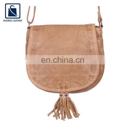 Product Description 2022 New Arrival Best Selling Buff Antique Fitting Flap Closure Type Vintage Style Genuine Leather Sling Bag for Women We are engaged in the manufacture, export and supply of a massive assemblage of Sling bag. Sling Bag that are made using supreme quality leather obtained from our vendors. Vastly acknowledged for their lightweight and optimum finishing, these Sling Bags are massively demanded and can be availed at reasonable rates. WE CAN WORK FOR THE PRIVATE LABEL Specification Product NameSling BagMain MaterialGenuine LeatherFittingsBuff Antique StitchingMatchingLining MaterialSwiss Cotton GenderFemaleProduct Type Sling BagDimension (HXLXW) in cm16.5 X 18.5 X 4.5 Cm Colors AvailableBrown, Congnac, Black, Grey, Tan, Olive Customize Etc. Packing & ShippingAbout Us Dugros Leather India Pvt. Ltd., founded in 2006, is an ISO 9001:2015 certified and BSCI –compliant professional OEM/ODM manufacturer. We have been specialized in designing and manufacturing all kinds of genuine leather bags, wallets and accessories for over 15 years. We also have an in-house well equipped LWG certified tannery which processes raw skin to produce finished leather to cater our factories based on the customer’s requirement, thus keeping the quality of leather in control and offering very competitive prices. Other than leather, we also make bags in canvas, jute, nylon and PU. We have been cooperating with clients from Europe, North America, South America and Asia.Our 3 production units all located in Kolkata (India) with two of them in the leather hub of the city (Leather complex, “Bantalla”) along with an in-house tannery, with more than 500 professional and skilful workers, equipped with modern facilities and total production area of 10,000/sq. meters, our monthly capacity reaches 50,000 bags and 1,00,000 wallets.Over the past 15 years, due to the excellent quality, competitive price as well as fast customer service, Dugros has been well known as a reliable and capable supplier to many international group and brands. Our R&D department which is equipped with over 40 professional sample technicians that can create 200pcs new styles every month.Ever since our foundation, we have been focusing on strict quality control over the production to ensure the quality of our every delivery by implementing a ratio of 1QC/20 workers. Our leather/Hardware/Painting edge/Reinforcement/Lining have all passed eco-friendly tests by Intertek and Bureau Veritas.Reasonable prices, the best quality, and reliable service are the soul of Dugros. Trust us, we can work together to create a bright future. Certificates Our Services SAMPLE SERVICES We can replicate any design provided by you and as per your specimen sheet. After making the sample, we do prepare cost sheet and quote our best price based on the quantity. The lead time is 7 to 15 days, depending on the product. Sample prices charged will be refunded after we receive an order according to our MOQ. CUSTOMIZED SERVICES Customized logo can be printed. Sample orders are accepted. Quick response and fast delivery are guaranteed. Customers' designs are welcome. LOGO SERVICES Engraving Laser printing. Silk screen printing: used for simple logos. Colorful foil logos. Rubber sticker printing. UV printing (matte/glossy): used for special material printing. We have all these printing craft and can do as your requirement. AFTER-SALES SERVICES When you place an order with us, during production we will capture clear photos of your products so you can see them step by step. We can book container for you by our forwarder and calculate all kinds of costs during shipping and keep follow up of your goods. If our goods have any kind of problem or quality issue, you can contact us anytime and we will do our best to solve the issue. FAQ 1. Q. Can your factory make any leather goods? A. We have 15 years of expertise in producing leather men’s bag, ladies handbag, backpack, office bag, travel bag, wallets, credit card holders, passport covers, clutches, pouches, slings, key holders, Aprons, gloves, kitchen appliances etc. We also make bags in canvas, fabric, jute, PU. 2. Q. Are those products on your website all genuine leather? A. We primarily deal in genuine leather as we produce the leather ourselves in our in-house tannery. But we do also make goods out of canvas, jute, fabric and PU. 3. Q. What about your products, do they meet the European's environmental standards?A. We abide the EU regulations and meet the standards as we are an SA 8000, LWG Tanners, and ISO 9001:2015 - company. 4. Q. What payment method can you accept?A. PayPal, L/C, D/P, T/T, 30% ADVANCE PAYMENT payments for offline orders. 5. Q. What is your MOQ?A. Bags- 100-200 pcs per style per color. Wallets- 200-300 pcs style per color. Small accessories: 300-500 pcs per style per color. 6. Q. What about the lead time?A. 45-80 days depending on the product and quantity. 7. Q. How can I visit your factory? A. (a) OFFICE ADDRESS- 21E, Gorachand road Kolkata-700014 West Bengal, India. (b) FACTORY ADDRESS- zone no.8/plot 622 Kolkata leather complex Kolkata-743502 WestBengal, India.Get in Touch with Us