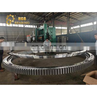 Why Choose UsProduct Description1,Single row four point contact ball slewing bearing2,Single row cross roller slewing bearing3,Double-row ball slewing bearing4,Three-row roller slewing bearing5,Roller/Ball Combination Slewing bearing.Single row four point contact ball slewing bearingSingle row cross roller slewing bearingDouble RowBall slewing bearingThree row roller slewing bearingRoller/Ball Combination Slewing bearingTypeSingle row four point contact ball slewing bearingRollng elementsSteel ball / Cylinder RollerRollng elements MaterialGCr5/GCr15SiMn/CustomizedBearing Material50Mn/42CrMo/42CrMo4V /CustomizedCage MaterialNylon/ steel /copperStructuretaper pin , Mounting holes,Inner ring ,grease fitting,load plug, seals , roller ,spacer balls or separatorsOuter diameter50-10000mmBore size50-10000mmMounting holeThrough hole/Tapped holeRaceway hardness55-62HRCInner and outer ring modulation hardness229-269HB/CustomizedGear typeNo gear ,Internal gear , External gear.Embellish greaseEP2 lithium lubricating greaseCertificateABS.BV,DNV,ISO9001,GLApplication areaLadle turret,Stacker crane,Bucket wheel machine,Solar heliostat Tracking System,port crane, Cabling machine,tower crane , offshore platform,ferris wheel, Palletizing robot,Rotary metallurgical furnace,can packing machine,Wind blade transporter,shield tunneling machine,tube push bench,excavatorBrand NameHGBPlace of OriginLuoyang HenanWarranty12 monthsPayment termT/T is our first choicePacking details1,Filling with anti-rust oil2.Corved with Plastic paper3.Corved with kraft paper 4.Corved with Blue tie 5.Put in wooden boxProduct DetailsBearing PartsSteel ball/Roller:carbon-chromium bearing steel GCr15SiMn or GCr15 for rolling MaterialCage: include integral cage, segment cage and spacer-type cage. 20# steel or copper for integral and segment cages, PA 1010 resin or QA110-3-105 albronze for spacer-type cages.Seals:uses NBR or VITON, few felted wool.Single row cross roller slewing bearingComposed of two or three rings. compact structure, light weight, high manufacturing accuracy, small assembly gap and high requirement for installation accuracy. Rollers are 1:1 cross-arranged.Can be bear axial force, overturning moment and large radial force at the same time,and widely used in lifting transportation, construction machinery.Three row roller slewing bearingThree row roller bearing able to bear all kinds of loads at the same time, it is the largest one of the four structural products with large axle and radial dimensions and firm structure. Especially suitable for heavy machinery requiring larger diameter, such as bucket wheel stacker and reclaimer, wheel crane, marine crane, port crane, ladle turret,large tonnage truck crane,heavy machinery and so on.Single row four point contact ball slewing bearingSingle row four point composed of two seat rings. has compact structure, light weight, and four-point contact between steel ball and arc raceway. It can bear axial force, radial force and overturning moment at the same time. The construction machinery of rotary conveyor, welding manipulator, small and medium-sized crane and excavator can be selected.More ProductsMore ProductsMore ProductsMore ProductsAbout UsWide production workshop and strong production team as a support,ensure the products can be produced by required quality and quantity. andThereby increase the customer benefits.The above is our production equipment with advanced technology , the stable and longevity bearing produce from these equipment .We specialize in the production of manufacturing slewing ring bearings or turntable Bearings.The Independent R&D and sales team in HGB , also do our best for special needs;We offer high-precision and high-quality slewing bearings, which are widly used in many fields,such as hoisting and conveying machinery, construction engineering machinery, harbour machinery, wind power generation and so on.CertificateFAQ1.Q: Are you trading company or manufacturer ?A: We are professional slewing bearing manufacturer with 20 years' experience.2.Q: How long is your delivery time?A: Generally it is 4-5 days if the goods are in stock. or it is 45 days if the goods are not instock, Also it is according to quantity.3.Q: Do you provide samples ? is it free or extra ?A: Yes, we could offer the sample, it is extra.4.Q: What is your terms of payment ?A: Payment<=1000USD, 100% in advance. Payment>=1000USD, 30% T/T in advance, balance before shipment.5.Q: Can you provide special customization according to the working conditions?A: Sure, we can design and produce the slewing bearings for different working conditions.6.Q: How about your guarantee? A: We provide lifelong after-sales technical service. Contact UsE-mail:Leo@hgb-bearing.com Phone:+8613213690595Whatsapp:+8613213690595