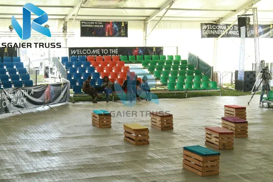 Guangzhou Sgaier Truss Co.,Ltd. is a leading stage and truss manufacture in China for years. As one of the biggest stage and truss factory in China, we can supply high quality performance products, such as: aluminum truss, assemble stage, folding stage, cable protector, crowd control barrier, bleachers etc. all products with approved CE and TUV etc. our advantages are quick delivery, competitive price, high quality and 5years quality guarantee service to our customers. If you are a distributor or dealer, please ask about our program to get a better strategy for your company. We have a close relationship with shipping company and can supply mixed product shipping if necessary and low shipping cost.