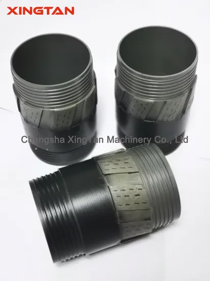 Product Description Reaming shell is used to couple the drill bit with the core barrel. It is suitable for use on all conventional and wireline core barrel. This product is mainly designed to ream the hole to the standard diameter. It can keep the stability of the core barrel. When the old bit is replaced by the new one, reaming shell can also provide sufficient clearance for the new bit. It can also help to resist the abrasion of the core barrel. This type of diamond tool is physically longer than the standard type. So for the compensation of the difference in reaming shell length, an appropriate inner tube extension is necessary to be used.