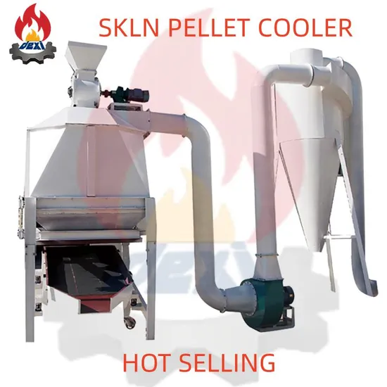 Product DescriptionHigh Quality Skln-1.2 5.5KW Pellet Cooling Machine Animal Feed Pellet Cooler SKLN pellets cooling machine is mainly using for cooling 2-8mm diameter pellets, when outletfrom pellet machines, the hot pellets temperature is about 60-80 centigrade, after using thepellets cooling machine, the temperature is not higher than room temperature +3-5. The pellets cooling machine adopts counter flow theory, cold air goes inside of cooler frombottom and then go out from top, hot pellets goes to cooler from top to bottom, as time goes on.cold air will cool them at the bottom gradually,pellets will be discharged at the cooler bottom, inthis way will reduce pellets broken, if cold air also go to cooler from top, which same as pellets.then hot pellets will meet with cold air suddenly ,then pellets will be easily broken, especiallypellets surface broken easily. So, the pellets cooling machine can cool fully and equally, pelletbroken rate is smaller than 0.2%. The SKLN pellets cooling machine generally works with cyclone and air fan, air lock. which isused to clean dust, also it can install a screener at the cooler bottom, which can separate dustand good pellets after cooling.OTHER MODELS