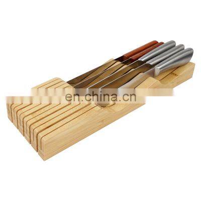 Bamboo In-Drawer Knife Block Set Large Kitchen Detachable Washable Cutlery Slot Organizer for Sharpening Steel and Cutter