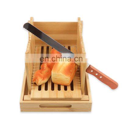 Hot Sale Bamboo Foldable Manual Bread Slicer With Crumb Catcher Tray