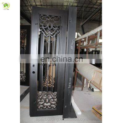 Product DescriptionMaterialIronProduct nameManhattan modern cheap price wrought iron 24 inches exterior doorsDoor HandlingLeft/handle-Hand / Outswing or inswingFinish TypePaintedGlass StyleHammeredSurface FinishingPaint or powder coatingPositionGarden, park, hotel, houseAntirust WayGalvanizing(hot dip) or zinc spraying, antirust paintingManufacturer Warraty10 year part warranty, 5 year finish warranty, 1year glass warrantyWe place the needs of our clients ahead of all other considerations.That means we provide the very best in high quality workmanship while offering the lowest prices in the United States. It also means that, behind every iron door, gate, or garage door we build is a ten year warranty on structures as well as five years on paint. Our AdvantageOur pledge is to establish lasting relationships with our customers by exceeding their expectations and gaining their trust through exceptional performance by every member of our team.Product Information of Manhattan modern cheap price wrought iron 24 inches exterior doorsDecorative, tempered double-pane glassGlass opens independently of doors for cleaning and ventilationWeather stripping around each door and glass panel2 inch thick door panel; injected foam insulation in jamb and slabsFlush bolt system at top and bottom locks in dormant door of double doorsDoor unit size is measured outside to outside of jamb. Glass OptionColorHandlesOur CompanyGuangzhou Apex Building Material Co.,Ltd is a comprehensive enterprise integrated in development, production and sales for over 10 years professional designs including various kinds of doors and windows, cupboards, staircases and so on. We have a modernized production factory in China Foshan, cooperating with stable domestic and overseas partners based on mutual trust. Our products are well-known for its superior quality and elegant taste favored by the majority of customers all over the world.Production FlowPackage and DeliveryRelated Products
