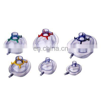 high quality medical latex free pvc face anesthesia mask Product Descriptionanesthesia mask specification:Made from non-toxic PVC100% Latex-freeComplying with biocompatibility standards, Soft air cushion ensures flexibility, air tightness and low odorThe mask is specially designed to fit comfortable on a patients'face This device can be used in connection with medical equipment such as anaesthetic apparatus, ventilators, oxygen machines, hyperbaric oxygen stores, inhaled painless delivery instruments, and emergency breathing apparatus.Packed in a individual PE bagSize: 1#, 2#, 3#, 4#, 5#, 6#Related ProductsCompany InformationOUR ADVANTAGESExperience· More than 15 years experience in medical instruments industry· Products sell to more than one hundred countries all over the world· An esteemed & reliable manufacturer in chinaServices· One-stop shopping of medical instruments products· Less than 45 days delivery· 24 hours online service· We can provide our technical documents for your product registrationProfessionalism· Having a great understanding of market trends· Systematic product knowledge training system· Leading development oriented manufacturer· Help customers build factorySafety· All products certified by CE/ISO13485· Professional QC team Certifications Trade Shows Packaging & Shipping FAQ1.Can I get some samples?We are honored to send you our samples,but the express fee need to paid by your esteemed company2.How about the delivery time?1).For Samply order will be prepared within 5 days.2).For bulk order.normally,it needs 20-30 days,it's based on you QTY.3.Can you do custom-made?OEM,ODM welcomed.1).Silk print your logo on the product.2).Customized colorbox.3).Design and produce based on your idea and draft.4.How about the payment?1).Amount less than $1000.You can pay for the order by Paypal,western Union.2).Amount more than $1000.You can pay for the order by T/T,LC.We support Trade Assurance - A free service that protects your orders from payment to delivery,it can make your funds safer.5.How about the shipping?1).For sample order,it can sent by express company like UPS,Fedex,TNT ect.We have strong cooperation with them and if you have express collected account,you will no need to pay us.2).For bulk order,it would sent by sea.We have our cooperation forwarder and you also can use your OWN forwarder.6.How about your service?1).Any Inquiries will be replied within 24 hours.2).Professional manufacturer,quality issue,competitive price.3).All products will be strictly quality checked and well-packed before shipping.4).If you order FCL and the broken more than 2%,we will replace you at the next time.5).We can assist you to apply the relevant certificates