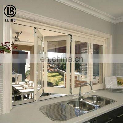 SpeciflcationProduct nameAluminum frame folding windowMaterialAluminum , GlassOpen typeFolding Profile thickness1.4mm / 1.8mm / 2.0mmSurface finishPowder coatingColorCustomizeGlass1. Double toughened glass:5mm+12A+5mm;6mm+12A+6mm2. Tinted; Low-E coating; argon gas infilled or with buildin blinds3. Single toughened glazing: 5//6/8/10/12mm4. Laminated glazing: 4mm+0.76pvb+4mm, 5mm+1.14pvb+5mmAccessories1. German brand: Roto, Siegenia, Geze2. Australian brand: Doric,LockwoodMesh1. Stainless steel security mesh 2. Aluminium security mesh 3. Fiberglass fly screen 4. Retractable fly screenWarrantyMore than 5 yearsPackingProtection foam+heat contracted plastic film orwooden packing or depending on clients special requirements .FOSHAN LEIBOFoshan LeiBo Door and Window Co., Ltd. has been engaged in the door and window industry in China for more than 16 years. Withrich industry experience and advanced production technology, we are committed to providing customers with high-quality productsand safe foreign trade services. It has a factory of 20,000 square meters and 180 workers. It covers an area of 30,000 squaremeters and has 180 skilled workers. Our main products are aluminum alloy windows, aluminum alloy doors, PVC windows, PVC doors,curtain walls, sun rooms, etc. LeiBo Doors and Windows Co., Ltd. has been unanimously recognized by customers, wholesalers and agents in international trade. Allour products comply with ISO 9001, BV, TUV, SGS Australia AS 2047 and European CE certification standards, as well as our strictquality control system The highest quality requirements specified. It is suitable for the construction of family houses, hotels,hospitals, buildings, offices, villas, factories, supermarkets, airports, etcOur CustomerFAQQ: How Can I trust your company?LEI BO:LEI BO is a 10 years experience on windows and doors, you can visit us anytime. We are the certificated supplier by SGS andAlibaba.Q: What is your manufacture time?LEI BO: Normally 25-40 days depends upon deposit received and drawing, depends on different designs and materials.Q: What is your MOQ order?LEI BO: 1 pc per one order for standard products.Q: Do you accept customized design and size?LEI BO: Yes, sure. We have many standard products for customer to choose, and also have our R&D team to do custom design.Q: What is your color available?LEI BO: Color available from the color board or RAL or interpon or real color sample.Q:What's your generally packaging?LEI BO:with protective film and carton for non-glass products, with protective film and wooden package for glass products.Q:What kinds of hardware mostly?LEI BO: German brand, Australia Brand and china top brand, depends on customer choice.