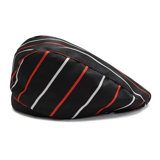 Product Description Polyester cotton beret western restaurant cafe chef hat baking baker striped elastic waiter hat wholesale