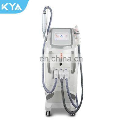 OPT 360 magneto-optical SHR fast hair removal machine Picosecond laser eyebrow washing IPL rejuvenation Beauty equipmentDetailed Images360 magneto-optical:The light beam penetrates the surface of the skin and is absorbed by the hair follicle, thereby destroying the structure of the hair follicle to achieve the hair removal effect without destroying the surrounding tissues. Picosecond laser handle:1. The 1064nm laser head effectively eliminates dark tattoos, tattoos, lips, eyeliners, and traumatic pigmentation and freckles. 2. 532nm laser head, suitable for treating red or tan tattoos, tattoos, lip lines, eyeliners. And can effectively fade the red or brown birthmark and various types of shallow spots. 3. 755nm Pistil skin head Sunburn, freckles, chloasma, age spots, dry spots, dermis spots and other stubborn stains. Red and black and so on. 4. 1320nm black face doll probe with toner to treat whitening skin, control oil, shrink pores, etc. RF handle:The water circulation mode of the enlarged tube is adopted to achieve rapid freezing. The ice-sealing mode enhances the firmness of the skin. Name360 magneto-optical + picosecond + RF multifunctional beauty equipmentModelKYA-L003BEffectAcne treatment, hair removal, facial lifting, skin firming, skin whitening, tattoo removalPicosecond wavelength532nm/1064nm/1320nm/755nm360 magneto-optical wavelength640nmRF head diameter10×10mm,20×20mm,30×30mmOutput Power3000W360 magneto-optical handle spot area12x30mmSpot diameter in picoseconds2-10mm360 magneto-optical energy0-50J/cm2RF energy0-20J/Cm2Picosecond energy10-2000mjDisplay screen10.4 inch true color touch screenProbe360 magneto-optical handle*1, picosecond handle*1, RF handle*1Voltage110V/220V 60Hz/50HzPackage size60*52*134cmGross weight47KGProduct Description Company Information Factory Hot Sale Certifications
