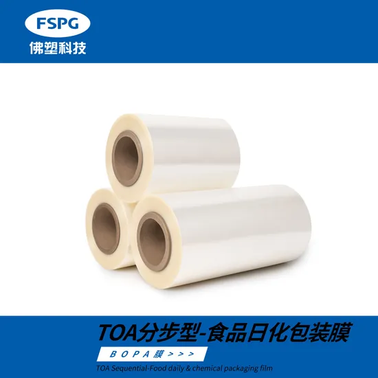 Application Type of BOA,TOA-C and OA-1 can be applied in the process of printing and laminating, TOA-S and OA-2 in laminating without printing. BOPA films are humidity sensitive, which may cause printing or laminating defect in high humidity absorption and impacting the usage satisfaction, thence, users are recommended to process the unpacked film rolls quickly, pack the printed films with aluminum metallized films, and laminate them without delay. To obtain product's good quality, BOPA is not suggested to be processed in the humidity over 75%RH.