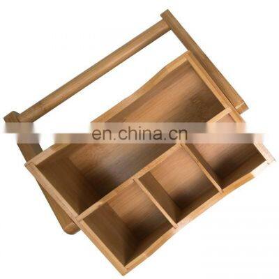 Product Description1. Made from premium quality bamboo wood Complements most decor. Holds plenty to keep items organized. Having a 4 compartments – 1 Large and 3 small.2. Versatile flatware caddy holder for cutlery, forks, spoons, knives, chopsticks, salt and pepper shakers, toothpicks, napkins. Lightweight with sturdy carry handle for easy holding.3. Ideal for indoor/outdoor dinner party, picnic, holiday buffet, rustic wedding reception, bar, cafe, camper, trailer, and more. Product Type: Storage Holders & Racks Material: Bamboo wood Size: 21.3 x 14 x 12.7 cm Color: Wooden ColorRelated ProductsCompany ProfileSunrix, a part of Sunrise Business Group, has grown from what was once a small hundred sq. Meter office into professional enterprise in developing, manufacturing and marketing various home and garden products