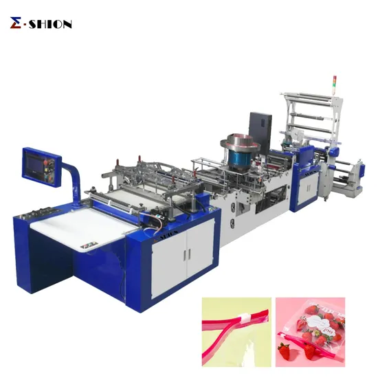 The whole procedure is operated automatically from single film raw material to electric eyes correcting, zipper fitting, pasting, edge welding, edge cutting, ultrasonic wave, electronic eyes printing, drilling, heat cutting, and automatically counting.