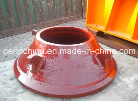 Concave and Mantle are the wear parts of Cone crusher. We use high manganese steel with chrome as material. Concave is installed at the top of cone crusher crushing chamber. All stones or mineral ores are crushed between it and mantle, so it is the main quick wear parts of cone crusher. With the concave, the body of machine can be protected well.