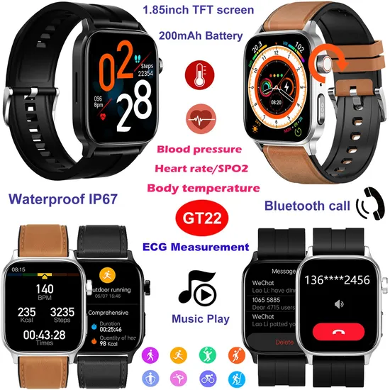 Multiple dial switching, call reminder,Bluetooth call, Bluetooth music ,voice assistant,ECG measurement, heart rate, arrhythmia, stroke warning,Body temperature, blood oxygen, blood pressure, pressure index, menstrual cycle