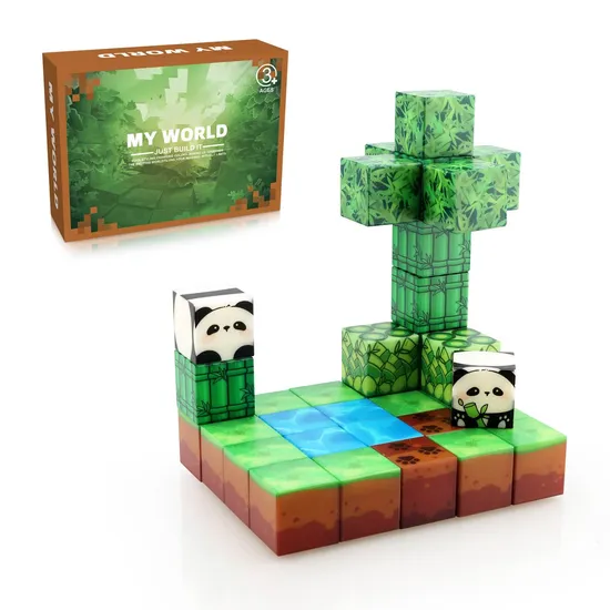 Custom My World magnetic assembly block magnet building block children's educational toy village house panda Set