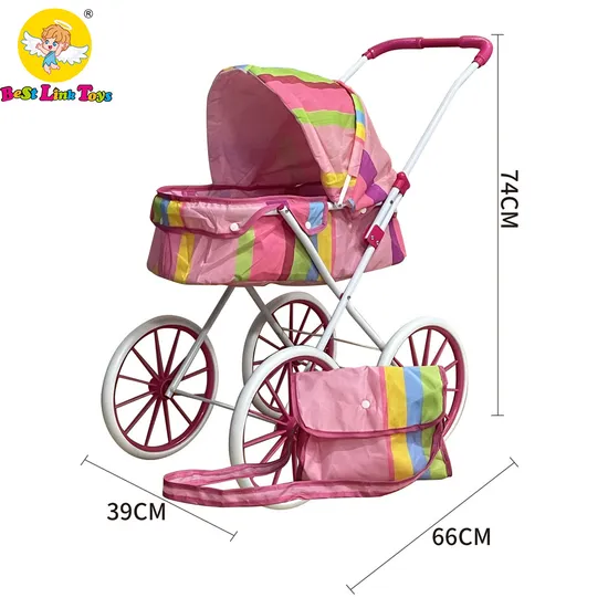 Wholesale Metal Rainbow Large Wheel Baby Doll Stroller Toy with Bag for Kids
