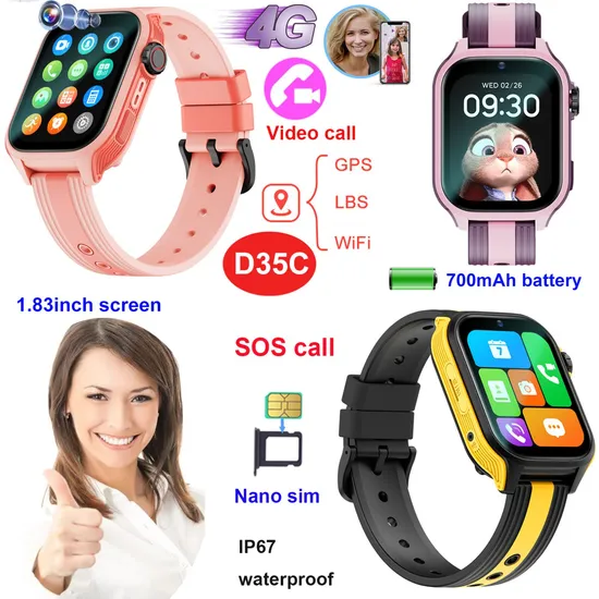 New developed 4G Waterproof IP67 Kids Safety monitoring GPS Tracker watch with video call D35C