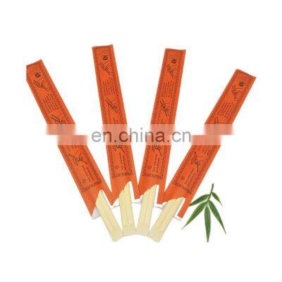 SpecificationProduct NameDisposable ChopsticksMaterial100% natural bamboo (over 3 years old)ColorNatural/CarbonizedSizeLength: 180/210/230/240 mm Thickness: 4.0/4.5/5.0/5.5 mmPackage1. Naked/ Half Paper/ Whole Sealed Paper/ Whole Sealed OPP/ Plastic Packing for each pair of chopsticks.2. 100 pairs/PE bag 20-30 bags/carton (regular packing)3. Personified design and LOGO are workable.Product Description The customized logo and package is available!!!Recommend ProductsCompany ProfileCertificationsFAQ 1 Q: Do you manufacture the products independently? A: Yes, welcome to visiting our factory. ------------------------------------------------------------------------------------- 2 Q: Do you have competitive price than other supplier? A: Absolutely. The same product we will do the best price, the same price we will do our best quality. ------------------------------------------------------------------------------------- 3 Q: How about the shipment? A: We will ship the goods within 25-30 days after received the payment. ------------------------------------------------------------------------------------- 4 Q: How many styles about your disposable chopsticks? A: There are 5 main types chopsticks:Twins((Sousei), Tensoge, Round, Genroku(Yuanlu), Rikyu. --------------------------------------------------------------- 5 Q: Can I do my own designed package? A: Sure, the customized logo and package is available. --------------------------------------------------------------- 6 Q: What certificates can you offer? A: We can offer CIQ, SGS, ISO certificates for you reference. ---------------------------------------------------------------Contact