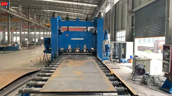 The whole machine adopts a frame structure, with the lower row of working rollers fixed on the lower machine base and the upper row of working rollers fixed on the movable crossbeam. The movable crossbeam can move up and down and tilt at a certain angle to adapt to the leveling of different thickness plates. To ensure leveling accuracy, both the upper and lower rows of working rollers are equipped with support rollers.
