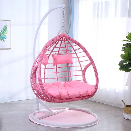 | Color :Beige/brown /black Product Dimensions : 43.5"D x 42"W x 81"H Frame Material : Rattan, Polyethylene, Alloy Steel Finish Type: Powder Coated About this item 1. Design - Tear drop shape basket | swing hanging chair with wicker plastic knots | Steel chains and spring hanging connection 2. Material - Wicker Plastic | Steel Frame | Cotton Mat - easy assemble,Powder-coated steel frame is wrapped with PE wicker, rust-resistant and weather-resistant for years of service. 100% solution-dyed polyester cushion is breathable and comfortable 3.Function - Swing chair | Lounge mat cushion design | perfect for both Indoor and outdoor decor and entertainment and resting | An great holiday gift for family and friends 4. Construct - Complex wicker plastic knots basket | steel arched support frame | Large cotton seating Laying cushion ,Equipped with stable stand, provides you with a safer swing motion. The strong suspension hook can hold up to 250lbs 5.Outdoor & Indoor Occasion:Modern design makes this chair suitable for both indoor and outdoor such as bedroom, balcony, patio, deck, garden and more living space |
