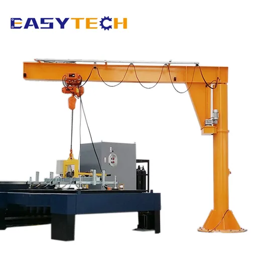 The carne is fixed on the concrete foundation by the anchor bolt, and the handling system is driven by the cycloidal gear reducer to rotate. The electric hoist runs in a straight line left and right on the I-beam of the cantilever and lifts the heavy objects.