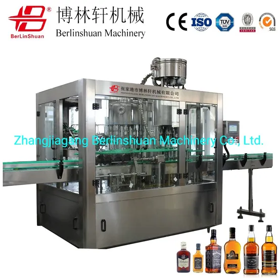 Whisky/Wine/Vodka Automatic Rinsing Filling and Sealing Machine/ System is based on advanced technology overseas and designed according to the filling processing demands of wine, vodka, whisky etc.