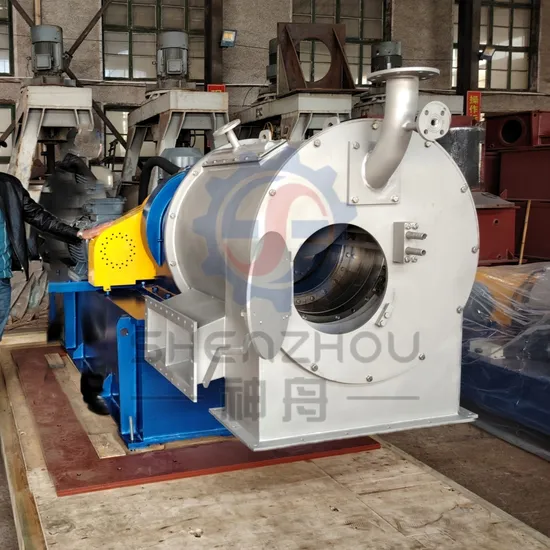 Working principle The pusher centrifuge is a fully automatic continuous filter centrifuge. The solid/liquid mixture to be separated is continuously conveyed to the high-speed rotating feed distributor of the centrifuge through a conveying pipe or a screw conveyor of the centrifuge to be evenly distributed on the screen of the first-stage drum. The liquid to be separated rapidly passes through the screen of the centrifuge under strong centrifugal force and is discharged into the liquid collecting hood; the solid phase is trapped on the surface of the screen by the screen to form a solid filter cake. The two-stage push-type centrifuge drum rotates at a high speed, and the first-stage drum also performs axial reciprocation under the action of the hydraulic piston through the push rod; thus, the ring-shaped solid filter cake is pressed according to the piston. The length of the stroke is pushed to the second stage drum through the first stage,drum; after the filter cake of the second stage drum is further dehydrated, it is pushed to the solid collection tank of the casing to discharge the centrifuge.