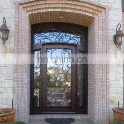 Luxury single leaf glass entry gate wrought iron door with sidelightsProduct DescriptionMaterialwrought IronDoor TypeExterior PrehungSizeW 36 inch x H 81 inchDoor HandlingLeft or Right outswing or inswingFinish TypePaintedGlassTempered Clear/ mirror/ rain glassSurface FinishingPaint or powder coatingPositionGarden, hotel, house, schoolAntirust WayGalvanizing(hot dip) or zinc spraying, antirust paintingManufacturer Warraty10 year part warranty, 5 year finish warranty, 1year glass warrantyProduct InformationDecorative, tempered double-pane glassGlass opens independently of doors for cleaning and ventilationWeather stripping around each door and glass panel2 inch thick door panel; injected foam insulation in jamb and slabsFlush bolt system at top and bottom locks in dormant door of double doorsDoor unit size is measured outside to outside of jamb. ColorDoor StructureDetail 1:The jamb is fully injected with polyurethane foam. It works excellent in insulation, could create you a comfortable home environment. Detail 2:The insulated tempered double pane glass equipped with window latch, can be opened independently like a window, for cleaning and ventilation.Inquiry to get more details of Apex Wrought Iron DoorRelated ProductsAnti-rust wrought iron door can match grills design wrought iron balcony railing, staircase railing perfectly, to make your home more honorable.Production FlowOur CompanyGuangzhou Apex Building Material Co.,Ltd is a comprehensive enterprise integrated in development, production and sales for over 10 years professional designs including various kinds of doors and windows, cupboards, staircases and so on. We have a modernized production factory in China Foshan, cooperating with stable domestic and overseas partners based on mutual trust. Our products are well-known for its superior quality and elegant taste favored by the majority of customers all over the world.Our Service Top 1: We provide one stop solution service.Top 2: Any designs can be customized. Apex has a professional designer team, we would take only one or two days to do the detailed drawing for you, and you would see the full material specification and design of our doors.Package and DeliveryFAQQ1: Does all the hardware come with the door for easy installation? A: Pre assembled lock hole, hinges, latch, bolts, threshold, essential hardware included. Q2: Can we use our own design? A: Yes, we will customize it according to your demands. After you send the picture of design, we will make drawings for you till you confirm it. Q3: What shipping method will adopt? A: We ship out the door by sea, to the port closest to you. Or using your own agent is acceptable. Q4: What's the production time? A: We will start to make the production after we get deposit. Normally, it needs around 40 to 50 days for producing. Q5: What's the payment way and payment terms? A: Usually we use T/T, Western Union, Cash. You can also through Alibaba website to pay it. 30~50% deposit beforeproduction and balance must be paid before shipping.