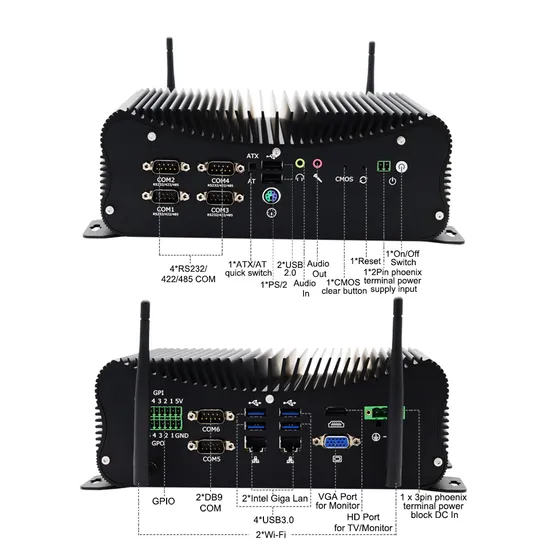 - 2 x Intel i225-V 2.5G LAN, 6 x DB9 COM, 4 x COM support RS422/RS485, PS/2, GPIO rich interfaces for different equipments.