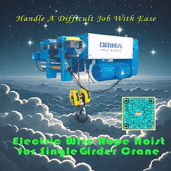 Working principle The wire rope hoist for single-girder crane is driven by a motor to drive the reducer. The reducer drives the drum to rotate, thereby realizing the take-up and pay-off of the wire rope. When the wire rope is wound on the drum, the hook rises; when the wire rope is released from the drum, the hook descends. During the lifting and descending process, the brake can brake the drum at any time to ensure the safety of heavy objects.