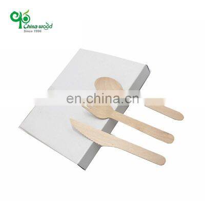 PRODUCT DISPLAYIn depth understanding will lead to better cooperation. Next, →click here to learn more information!NameDisposable Birch Wooden CutleryMaterial100% High Quality Birch WoodProductSpoon, Fork And KnifeSize180mm/165mm/160mm/140mm/110mm etc.FeatureDisposable, Eco friendly, Biodegradable, Food-gradeCustom madeHot Stampt with Logo PrintingOEM/ODMPackageBulk 100pcs Bags Packing/Small Gift Bag or Box Packing/Individual Packing/OEM Design PackingCertificationBRC BSCI ISO9001 LFGBContact nowOTHER STYLES & PACKAGESIn depth understanding will lead to better cooperation. Next, →click here to learn more information!WHY CHOOSE US Specialist in wooden & bamboo cutlery, ice cream stick, coffee stirrer, chopstick, skewer, paper straw, wood kraft essential, etc.All the product BRC, FSC, LFGB, approval,factory ISO9001, BSCI audited.Our Russian production base can make a continuous supply of high-quality logs and semi-products for regular production. Our production base in Shaowu,Fujian Province, produce bamboo serious products with the right cost and top quality control.CANTON FAIRFAQ