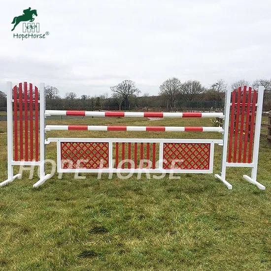 We have got good reputation by supplying our customers with our best jumps and service. Plastic, wooden and solid pvc jumps are available. Horse show jump wings are essential components of the sport of show jumping. Jump wings are typically made of lightweight yet sturdy materials such as PVC, aluminum, or wood. These materials allow for easy assembly and transportation of the jumps. The height of the jumps can be easily modified by changing the placement of the poles on the wings. This adjustability accommodates the varying skill levels of horses and riders, ensuring that the competition is both challenging and fair.Horse show jump wings often feature decorative elements and colors that contribute to the overall theme of the event. The aesthetics are not only for visual appeal but also serve to engage spectators and create an atmosphere of excitement during the competition.