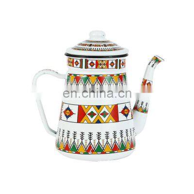 Product DescriptionEnamel Kettle Tea Pot Set Enamel Tea Kettle with LidMaterialsteel+enamelVolume1.5L,1.8L3.5LColorcustom colorCarton size52*38.5*34.5cm(16pcs/ctn)LogoCan be customized(Silk printing, Heat transfer, Laser and embossed)PackageColor box packing Details ImagesEnameled surface to prevent metal rust, heating is the surface of the formation of oxide layer, can reduce all kinds of liquid erosion, safe and non-toxic, and easy to cleanA coffee maker for campsite, cabin or even a retro farmhouse kitchen, this handsome gist outdoors enamelware coffee pot great-tasting, old-fashioned coffee or tea.Enamel has good thermal conductivity, fast heating, cooking with small fire can be.Suitable for short time heating or long timestew, slow heat dissipation, good heat preservationPacking & DeliverlyRelated ProductsCertificationsProduction Process