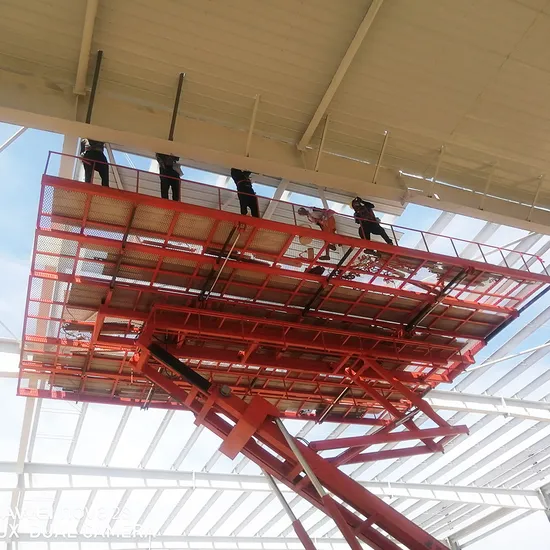 The special equipment for steel structure anti-ceiling is improved on the basis of the original high-altitude tile pressing machine, and the small platform required by the original tile pressing machine is improved into a large platform, which can be folded and folded for convenient storage when there is no need for high-altitude operation. After the platform is opened, 4-5 people can carry out high-altitude work at the same time, and the required materials can also be lifted to the roof.