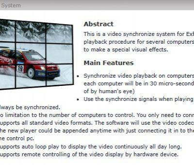 This is a video synchronize system for Exhibition. It could synchronize the video playback procedure for several computers, so you could combine several screens to make a special visual effects.