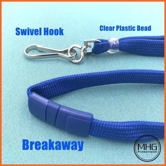 Our this 3/8'' Royal Blue flat breakaway lanyards with swivel hook attachment and clear plastic bead finishing option are an economical choice. These unprinted lanyards have a matching breakaway and a 48 thread count polyester material for a softer feel.
