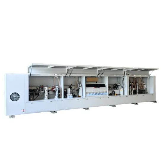 Includes chamfering + 4 sets of polishing + 5.5kW conveying motor | rear emergency stop + V-shaped air tank (prevents glue leakage). | Minimum panel length: 300mm. | Machine weight: 3900kg. |