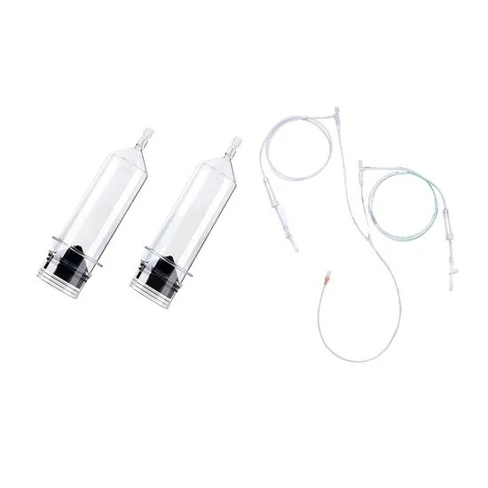 Dual Syringe: 2x200ml syringes,1-1500mm (60") Y or T shaped coiled tubing, 2- fill straws