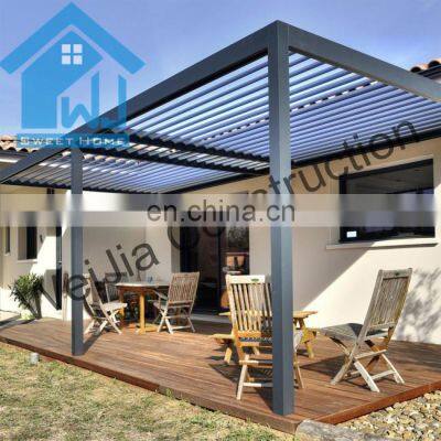 Product DescriptionOur this aluminum pergola is 100% water proof with internal gutter and the post size of our this aluminum pergola is 150x150x3mm which is very strong to hold the top louver roof system .We can custom any sizes for the aluminum pergola and you can choose motorized and manual control way.As we have our own color cutsomized work shop , we can custom any colors base on RAL color card .For the other accessories like side curtains/blind , LED lights ,heater ,wind/rain sensor , fan and so on , we cal also provide . And we can provide very detailed installation videos, so don't worry about the installation .Welcome to contact and inquiry .Product Name:GazeboPost size:150x150x3mm thickness aluminum profile very strong for aluminum pergola systemWidth Range:2.5m - 13.5mElectric Motor's Voltage:110V Or 230VRemote Control:1 Channel or 5 ChannelGutter:Complete with Gutter and Rain Spout for Inbuilt PVC DownpipeLouvres Blade Size:150mm /200mm/ 265mm Aerofoil Type Available, Waterproof Eeffictive DesignPivot Bolt:Highly Durable Aluminum with PP Blade End CapsOther Componentries:Heavy-duty internal fittings, Plastic bush, SS Grade Stainless Steel ScrewsTypical Finishes:Durable Powdercoated for Exterior ApplicationColors Options:We have our own color customized factory , we can custom any colors for youMotor Certification:TUV,CE,SGSWe will test each aluminum pergola and inspect the size before paint and ship to avoid any mistake and will send the testing videos and pictures to our clients .We have our own color customized workshop , we can custom any colors base on RAL color card number.ProjectUSD Aluminum pergola projectGermany Aluminum pergola projectUK Aluminum Pergola ProjectAluminum pergola designFactory and PackageFAQQ1:How to guarantee the quality of the products?We have our own QC team to control the products quality for all our clients'orders before loading.Q2:How long does it take to install a louvres roof /pergola?It depends on te skills,help and tools, usual 2-3 workers will finish the installation 50m 2 in one day.Q3:It is the louvre roof /pergola rain proof?Yes,the normal weather cnditions,even heavily rain,the roof /pergola will not let in rain.Q4:How does the rain sensor work?The control system normally programmed to close the louvres when rain is detected.Q5:Are louvres roof/pergola energy efficient?The adjustable louvres blade help to reduce heating and controlling the amountof direct sunlight.Q6:Can the louvres roof/pergola used next to the sea?All accessories in aluminium alloy,stainless steel and brass to avoid any rust and corrosion.Q7:How we do business?Take care of your prducts and serve your needs.Contact us by E-mail or by phone. Other Main Products