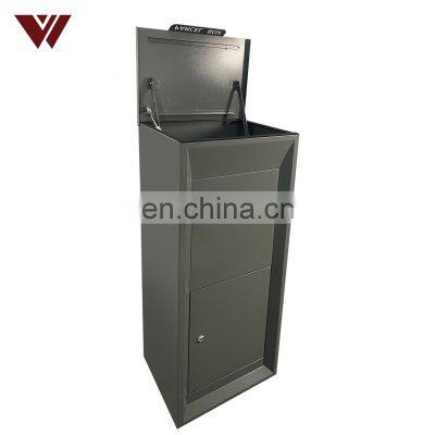 Product Description Say Goodbye to Sorry We Missed You Parcels This thick heavy gauge galvanized steel Parcel box has a tough scratch resistant powder coated finishExtra large mailbox size, it can hold several packagesSafety code lock or heavy duty lock with 2 keys to keep safeBolts securely to the ground. Mounting hardware not included Product NameHome Wall Mounted Mailboxes Smart Security Mailbox Metal Mailbox Parcel Drop Box MaterialSteel, stainless steelSurface finishPowder coatingSizeW400xD330xH1000ColorBlack, white, grey, custom colorLogo Custom logoFeaturesSafety and securely receive multiple parcel deliveries when you are not at homeWeight20kgsMOQ1pcsPackagingExpot standard packingPayment term40% deposit, balance before shipment Please contact us for more information. Packaging & Shipping Company Information WELDON is committed to provide high quality services to our customers and serviced many different industries, including Electronics, Medical, Communications, Rugged Systems and Commercial Industries, etc. We provide a wide range of services, which include:- CNC Turret Punch Press Stampings.- CNC Press Brakes.- CNC Shear.- CNC Machining Centers.- CAD - CAM Design.- Full Range of Sheet Metal Materials.- Welding: TIG, MIG and Spot Welding. ( Outstanding Quality )- Mechanical Assembly.- Silk - Screening and Deburring.- Bar Coding and JIT Delivery worldwide.We specialized in manufacturing all kinds of precise metal fabrication, including:laser cutting, stamping parts, bending parts, punching parts, welding parts accordingly clients drawings and specifications.OUR CERTIFICATES Weldon & Clients Our priority is the client satisfaction.To reach this goal we offer our best services and higher quality product.WELDON staff work as a big family, and Weldon treasure our friendship with every client. FAQ 1. Q: Are you a factory or trading company?A: We are manufacturer and trading company.2. Q: Where is your factory located? A: Our factory is located in Ningbo City, Zhejiang Province,China.All our clients, from domestic or abroad, are warmly welcome to visit us! 3. Q: How Can I Get A Sample? A: You can get samples by communicate with our export sales.4. Q: How Long Is Delivery?A: Sample Delivery time will be 7-10days.Mass production Delivery are 20-50days after sample confirmation.5. Q: What is the term of payment?A: Our normal payment terms now is: T/T,L/C, Paypal. In addition, the sample and its transportation costs can be paid by PayPal.6. Q: What Is The MOQ? A: MOQ depends on different items.7. Q: How Do I Order Your Products?A: You can check our website for any items you interest, and you can also getcommunication with our export sales and order for it accordingly.8. Q: What makes you different with others?A:1.Our Excellent ServiceWe promise to reply with a price within 24 hours - sometimes even within the hour.We will answer your questions immediately.2.Our quick manufacturing timeFor Normal orders, we will promise to produce within 5-35days. As a factory, we canensure the delivery time according to the formal contract.9. Q: Is OEM or ODM service available?A: Yes, we can provide OEM or ODM service to you and can put your logo on the goods.