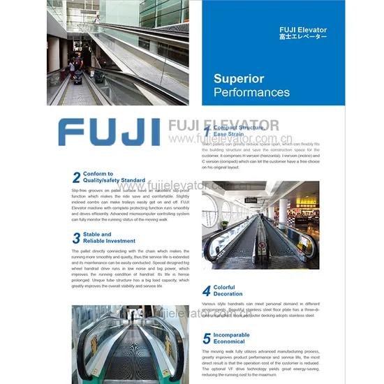 FUJI Escalator Model: FHE, Application: Indoor use escalator. FUJI as one of the recognized global leaders in elevator and escalator manufacturing, is famous for its advanced technology and superior quality; FUJI brand is getting more and more popular in the market by the good service, user-friendly design and excellent performance. We are proudly enjoying the respect from other elevator companies through our spirit of keep improving perfection and a professional R&D team featuring high quality, responsible and innovative.