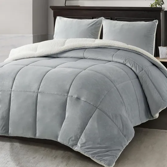 Upgrade your bedding experience with our Reversible Sherpa Blanket Minky Plush and Fuzzy Fleece Microfiber 3PC Comforter Set. It's the perfect choice for hotels, resorts, and other B2B establishments looking to provide their guests with the ultimate comfort and luxury.