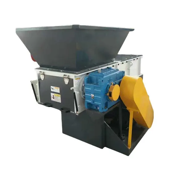 How the shredder worksThe shredder uses a gear motor directly connected to the worm, directly mounted on the active shaft of the shredder. The speed of drive shaft is varied through the gear transmission, so that the main drive shaft spiral tooth plate forms a relative motion. The spiral tooth discs on the main drive shaft are staggered so that the material entered will be squeezed, torn and cut, thus broken to smaller particles.