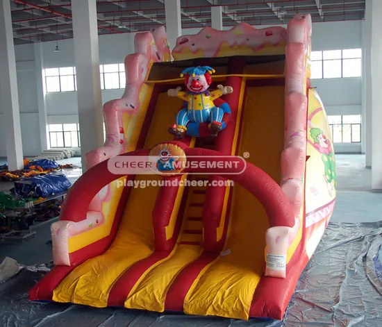Animation ad hoc styling, appeal to play pleasure, especially for play for children. Product appearance of color in white, black, yellow-oriented, according to the different requirements of customers to provide a variety of colors. Bright colors, cartoon style, as well as a strong sense of movement and highlights the strong visual sensory pleasure. This kind of inflatable Slide fits at town square, parks, playgrounds, community, resorts, child care centers and large restaurants, shopping malls and other places of operation. If you want, welcome you to come often to Cheer Amusement children's theme park.
