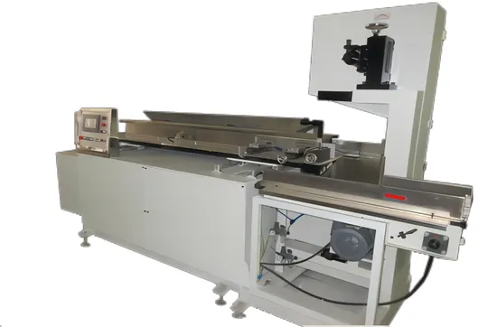 This is automatic band saw machine, for cutting toilet paper and kitchen towel