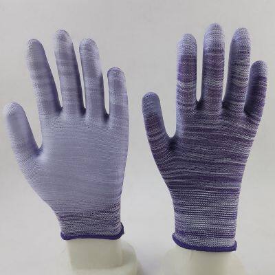 purple and white polyester knitted pu palm coated anti-static safety work gloves