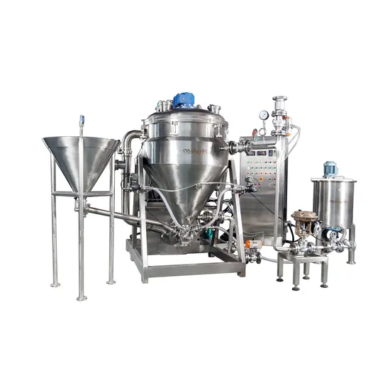 PerMix PVC Vacuum Emulsifying Mixer includes a mixing tank (with or without jacket), an internal slow running anchor mixer, and an external inline high shear mixer.